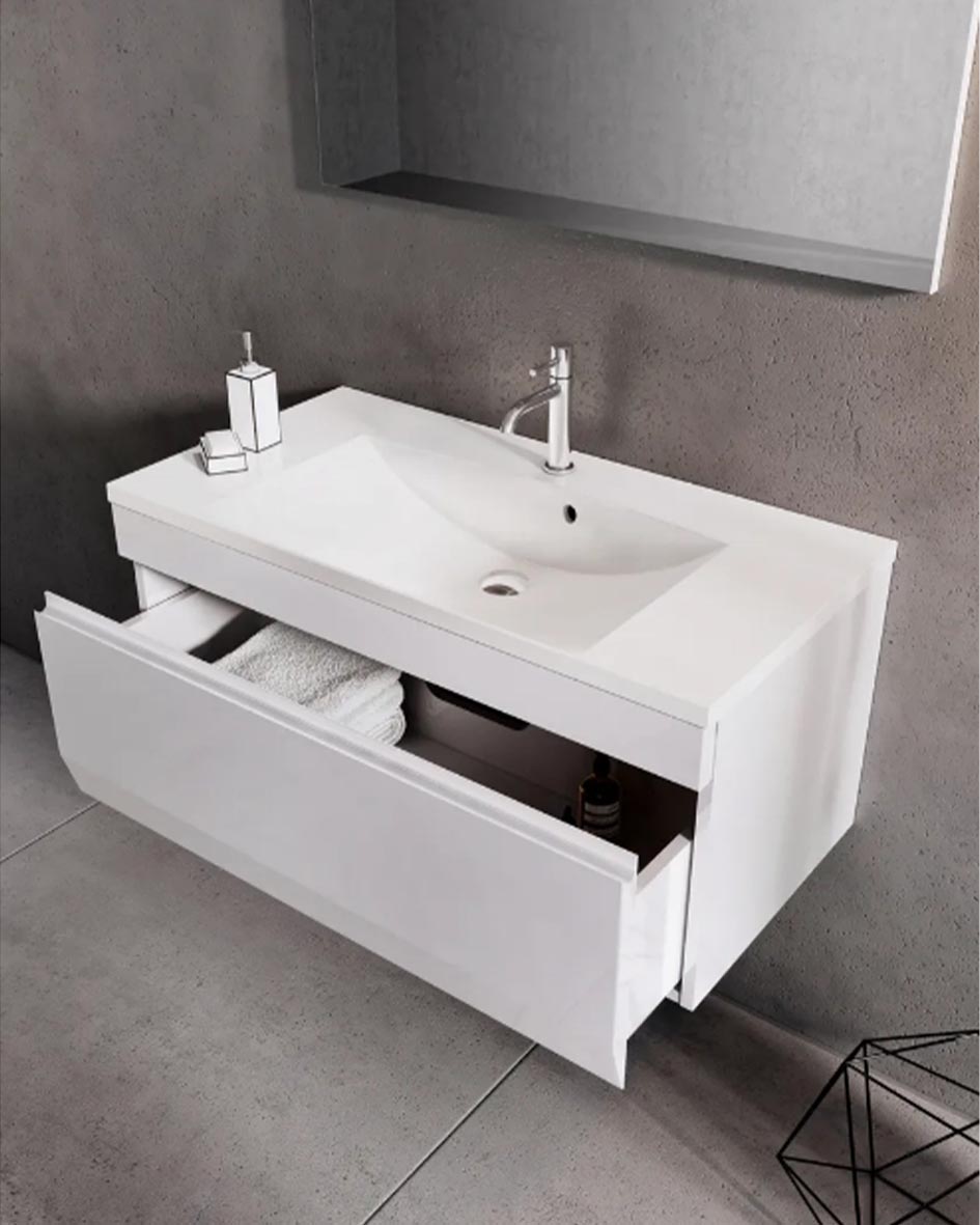 For those who particularly value comfort and convenience in everyday use, the ORISTO AMELIA furniture sink model, with a width of 120 cm, is recommended. It is made from high-quality composite material, which increases its resistance to scratches, chips, and other external factors. A significant advantage of this product is its wide surface area, allowing for easy placement of items like toothpaste tubes or razors. The glossy white color of the 120 cm ORISTO AMELIA furniture sink enhances the interior of any bathroom, regardless of its design.