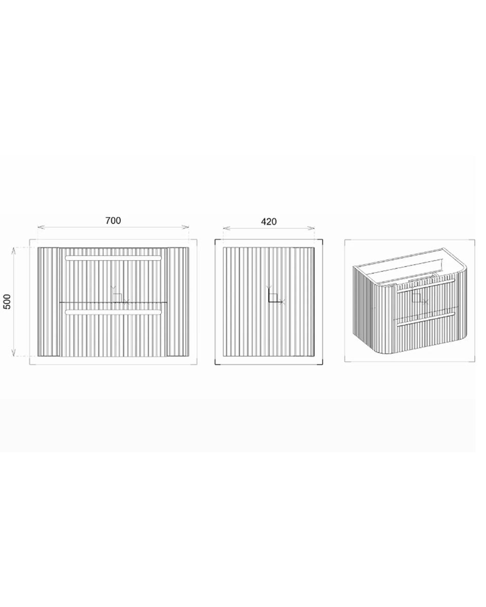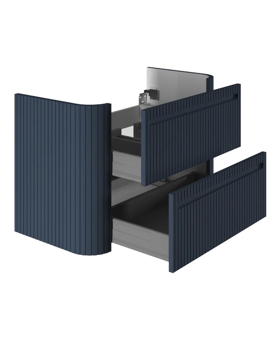 An elegant and functional solution for the bathroom is the Devo Gloria 2.0 70 cm Wall-Mounted Vanity Unit with a ribbed Perfect Touch Parisian Blue finish (GL2-SU2S70-2-F103). Its rectangular shape with rounded edges gives the interior a modern look. Equipped with two drawers with full extension and soft-close mechanisms, it provides convenient storage for bathroom accessories. The top drawer includes a practical organizer. Made from laminated MDF, the cabinet ensures durability and ease of maintenance. The decorative ribbing adds a unique character, creating a subtle, striking detail. The navy blue finish adds elegance to the bathroom. The product is available in various colors.