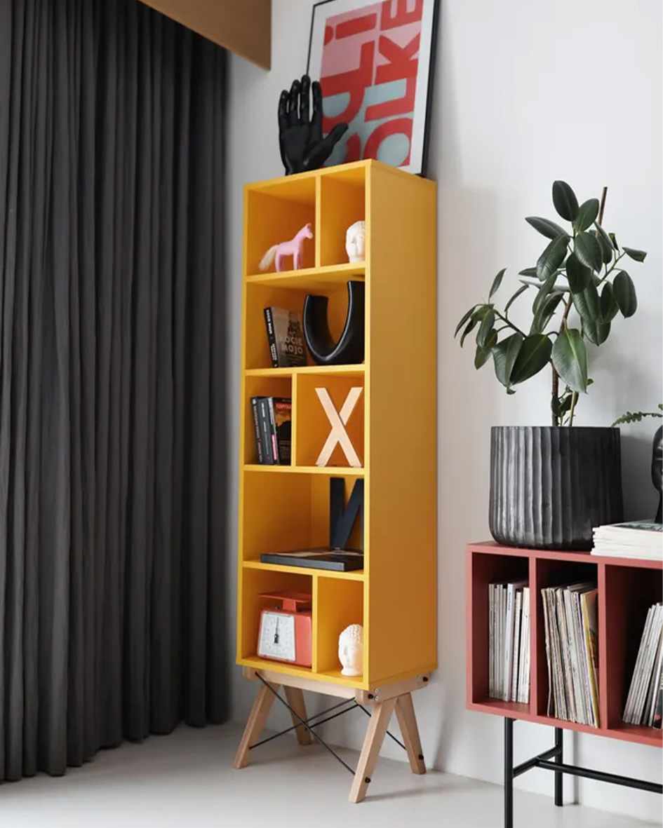 Available in 20 colors, including classic shades, the Tall Slim bookshelf can be matched to any interior, creating a harmonious and elegant space. Handcrafted to ensure the highest quality and precision in details, the solid wooden legs guarantee durability and stability, making the bookshelf last for many years. Its slim construction makes it ideal for narrow spaces, corners, or against the wall, without taking up too much space.