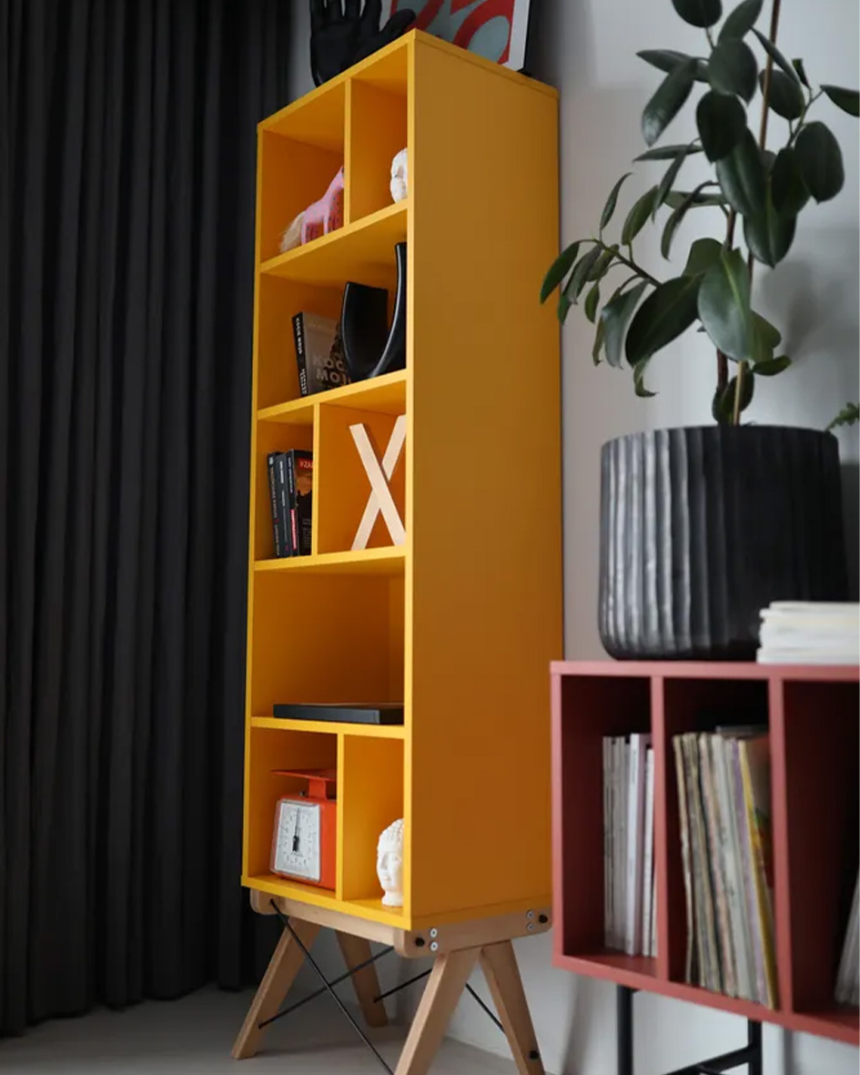 The Tall Slim bookshelf stands out with its modern Scandinavian design and a subtle vintage touch, giving interiors a unique character. Customers can personalize it by choosing a free BASIC color for the front or back, creating a unique look tailored to individual needs and interior style.