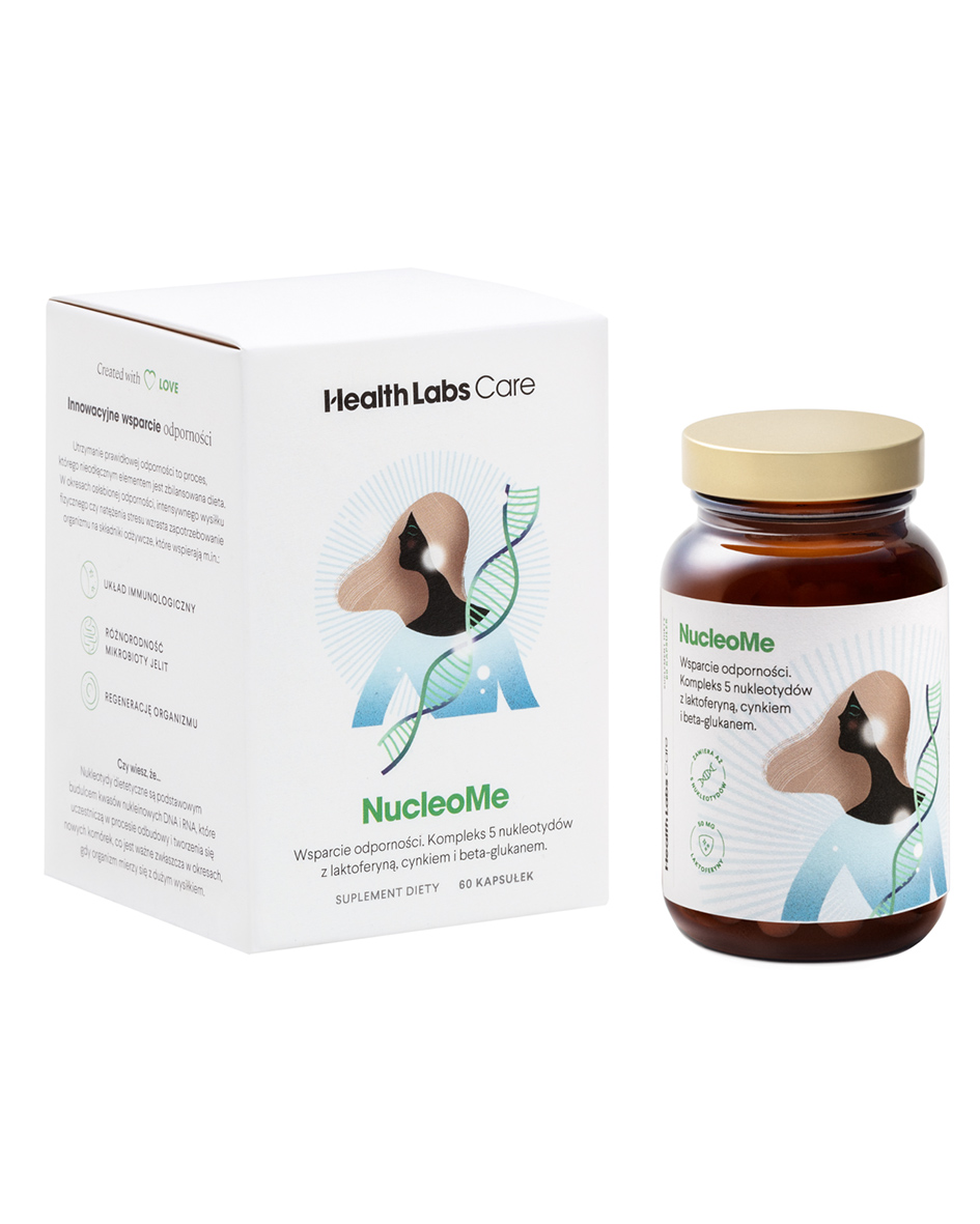 What makes the NucleoMe dietary supplement stand out? Complex of 5 key nucleotides The NucleoMe dietary supplement contains a complex of fundamental dietary nucleotides, which are the basic building blocks of nucleic acids DNA and RNA. Nucleotides participate in the process of rebuilding and forming new cells, which is especially important during periods when the body is under significant stress. Beta-glucan and lactoferrin The product also contains beta-glucan (dietary fiber) and lactoferrin, which are the subject of many studies regarding the immune system, gut microbiota, and iron metabolism. Enhanced composition for immunity The NucleoMe dietary supplement formula is complemented by zinc and vitamin C, which help in the proper functioning of the immune system and in protecting cells from oxidative stress.