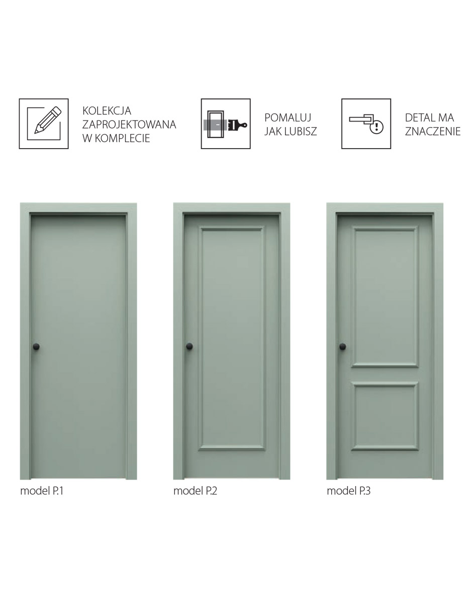 The ethereality and evanescence of air were the inspiration that became the basis for designing the PORTA 4 Elements P/ AIR internal door collection. It is directly created for lovers of beautiful and stylish interiors that fit into arrangements maintained in the spirit of glamour, vintage, or rustic. So, if simple forms and a subdued color palette reign in your four corners, the doors from this collection will undoubtedly fit perfectly. Three models of wings from this line are distinguished by their timeless construction, decorative stucco (models P.2 and P.3), and an extraordinary visual lightness, which you can complement with a gold, silver, or black ORTICA knob.