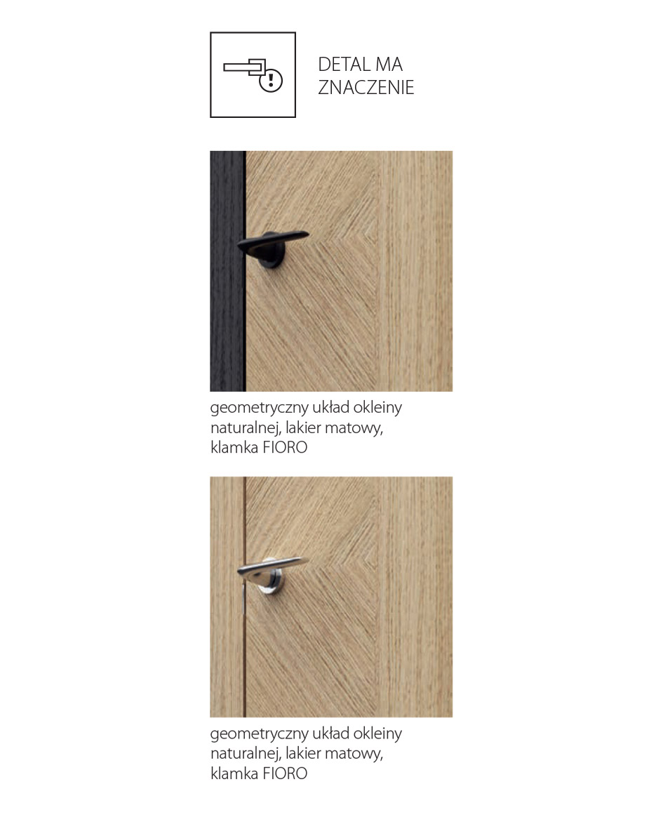 The natural veneer in the shade of matte oak constantly reminds us of the unforced, subdued beauty of nature. The PORTA 4 Elements Z/ EARTH collection refers to eco-friendly living, which is even present in modern homes, as evidenced by the ecological water-based varnish hardened with UV technology that covers the door wings from this collection. It is a combination of sophisticated design with durability and functionality. Along with the wings, you will also receive all the necessary elements, so that the whole will present itself cohesively.
