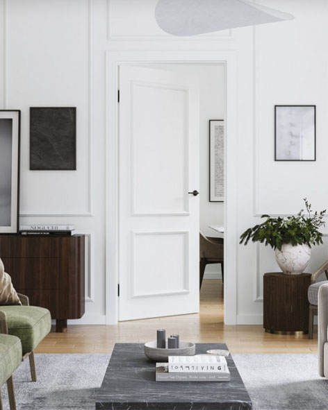 PORTA HARMONY doors are available in single-leaf variants, in standard sizes of 60, 70, 80, and 90 cm, as well as in a width of 100 cm. The double-leaf doors in this collection range in width from 120 to 200 cm. This ensures that the doors will fit any room, whether it’s a small and narrow room or a spacious living room.