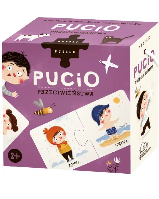 Pucio. Opposites - unique educational puzzles for the youngest! Pucio. Opposites is a unique puzzle toy for the youngest, developed by Marta Galewska-Kustra and Joanna Kłos as part of the popular series featuring the charming titular character. The series includes books that support children in learning to speak and write, as well as educational games and toys. This set teaches focus, stimulates thinking, and guarantees great educational fun, which can be enjoyed alone or with company.