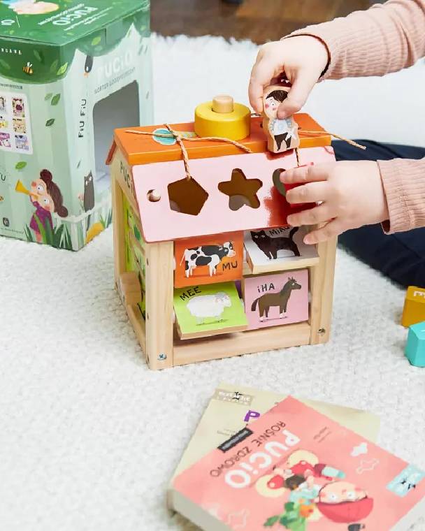 The first wooden toy in the PUCIO series and the first speech therapy sorter on the market!